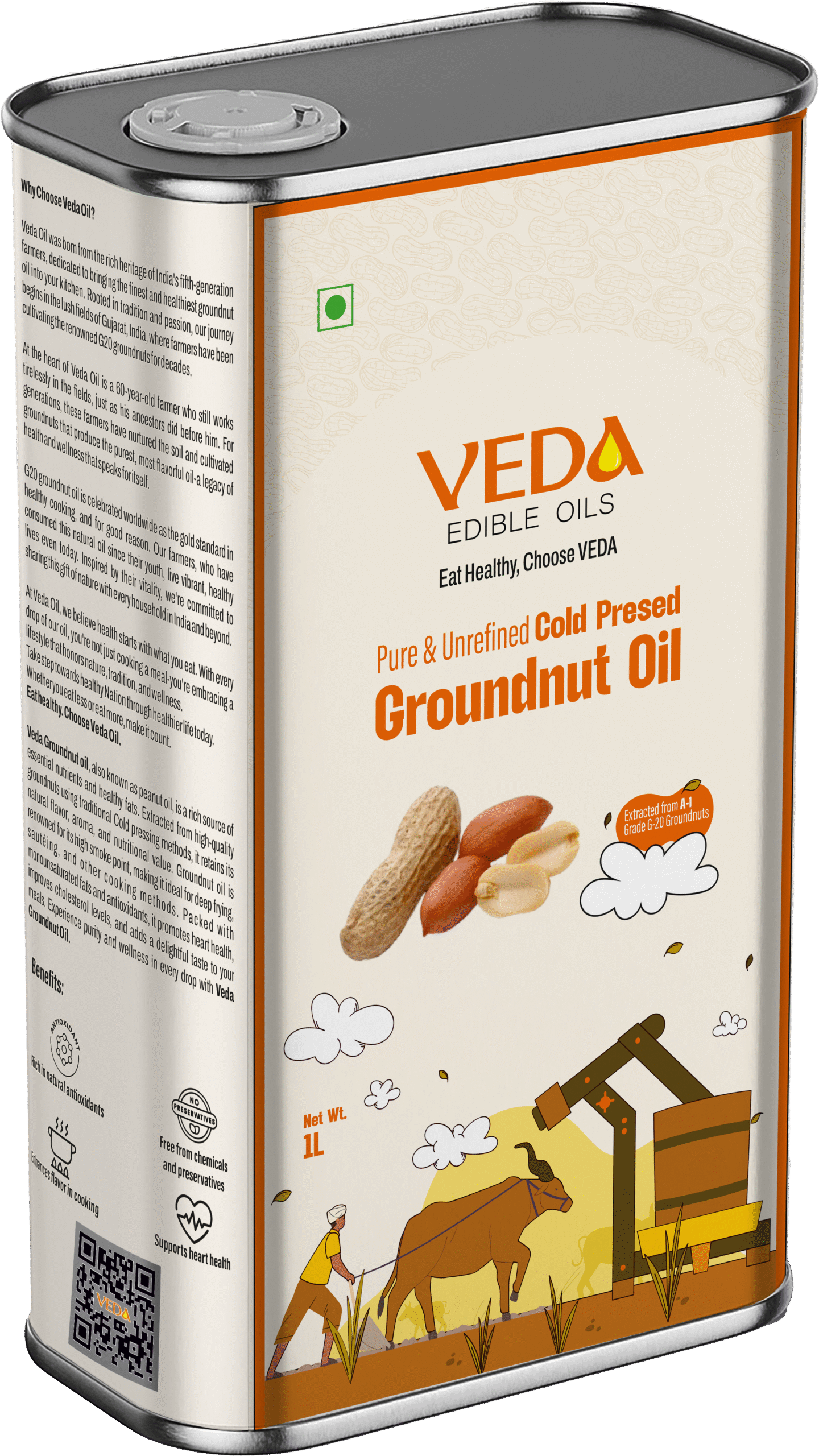 Why Choose Veda Groundnut Oil?- Graded peanuts pressed in small batches for reliable flavor.